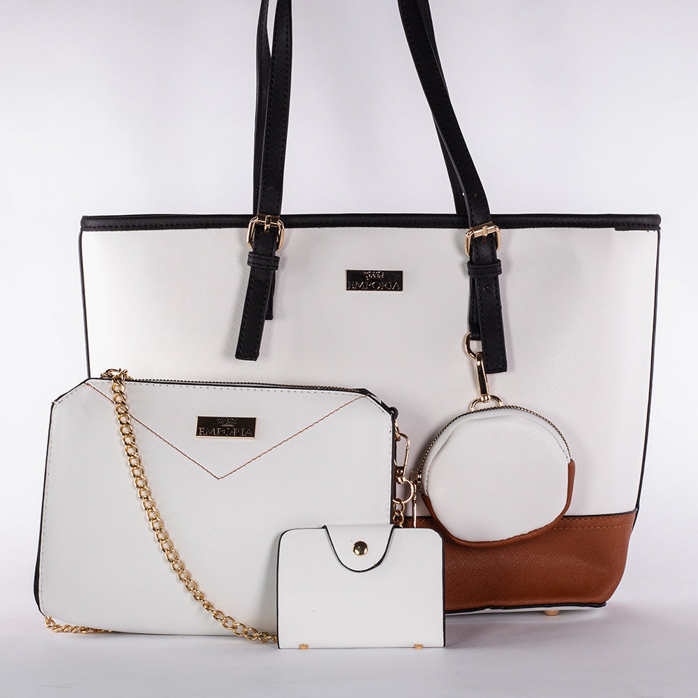 Jarní kolekce Emporia 2025 – „Měsíční svit moka“, 4dílná sada tašek; bílý