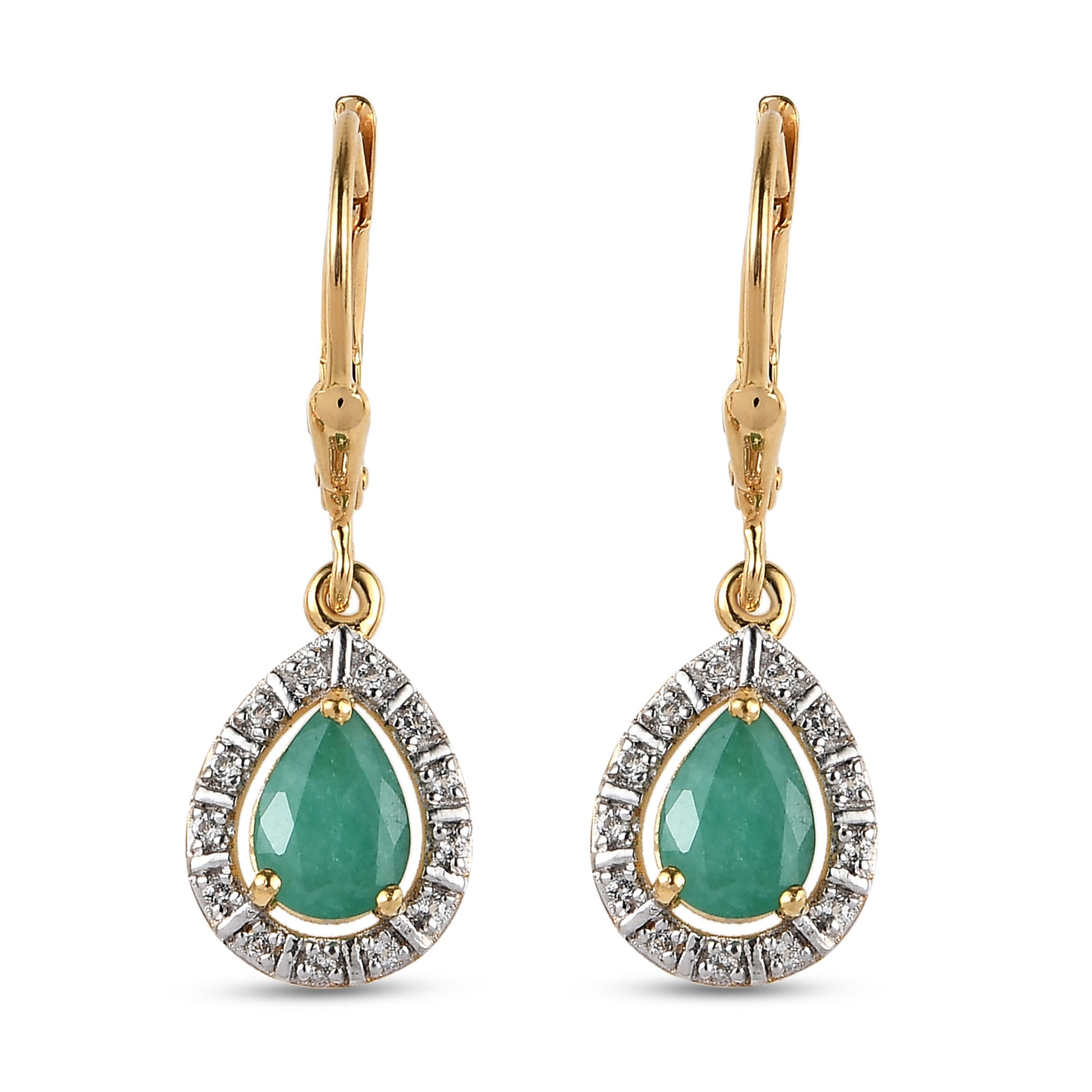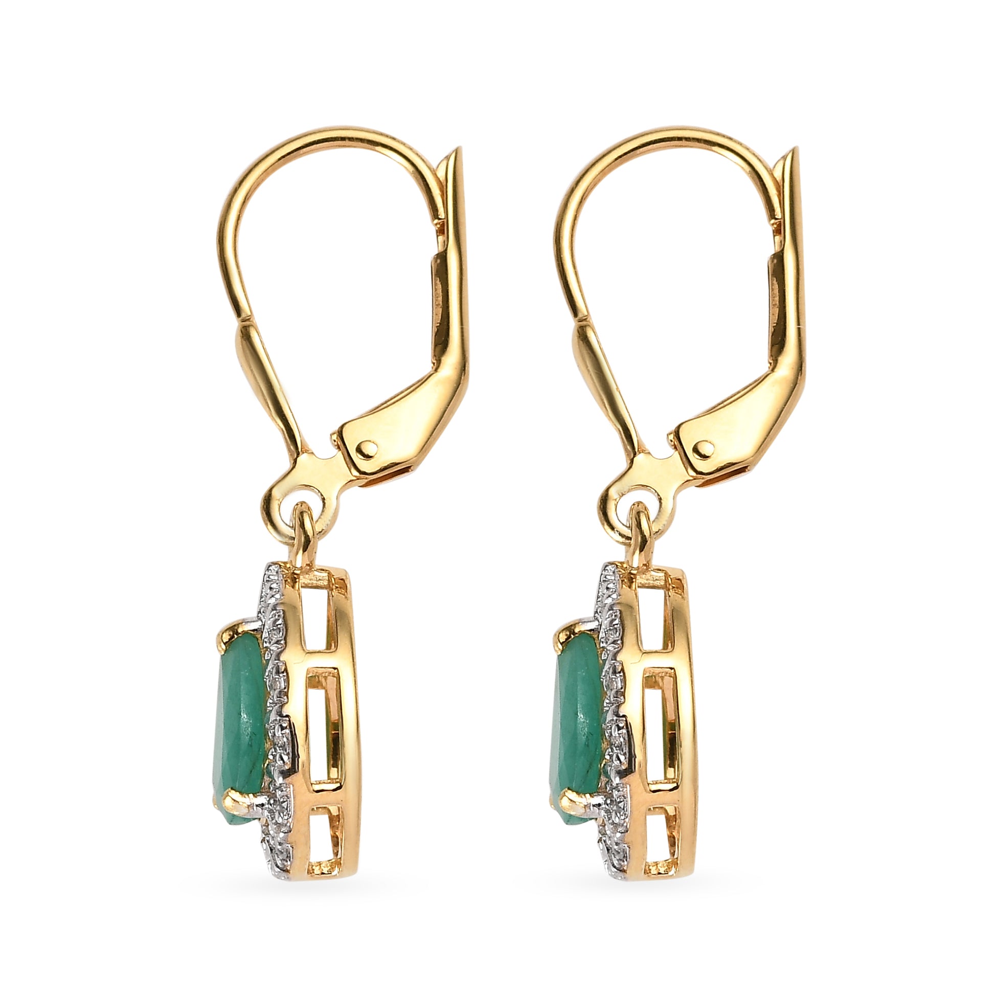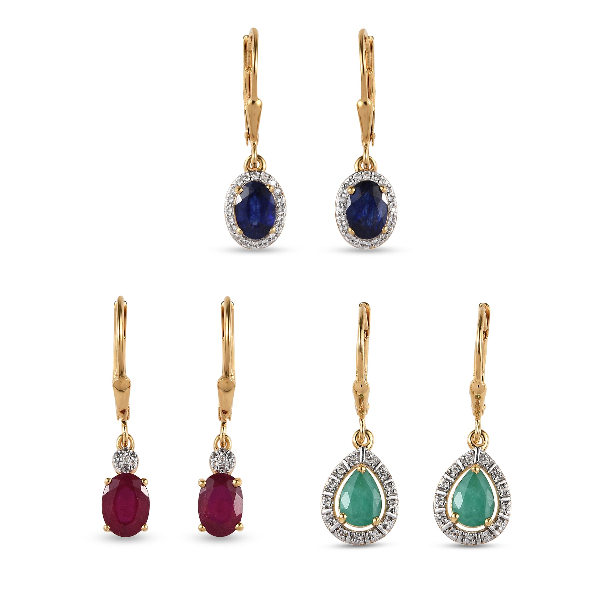 Pozlacená 925 / 1000 Sterlingové Stříbro Sada s Thajským Rubínem a Brazilským Smaragdem ( Náušnice )