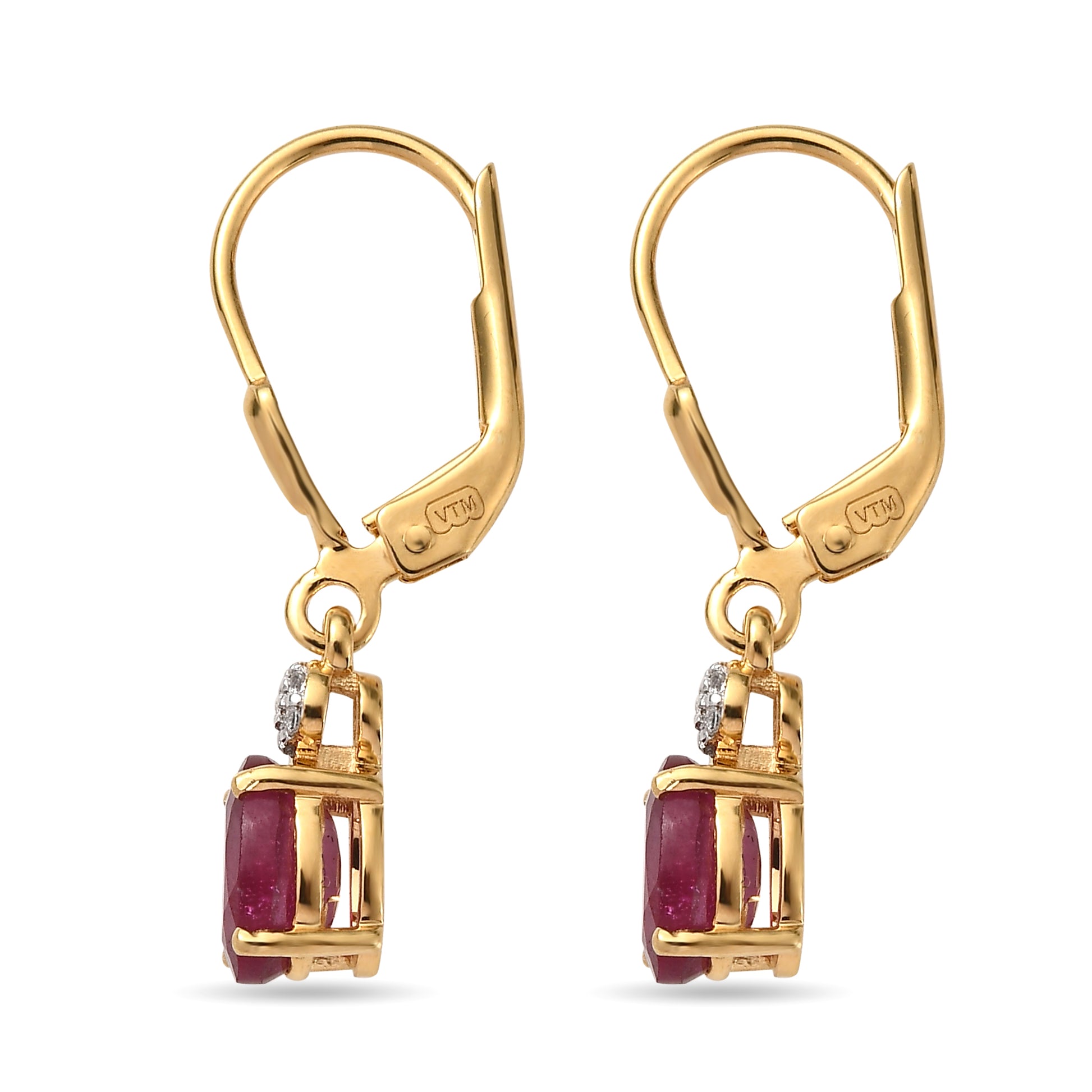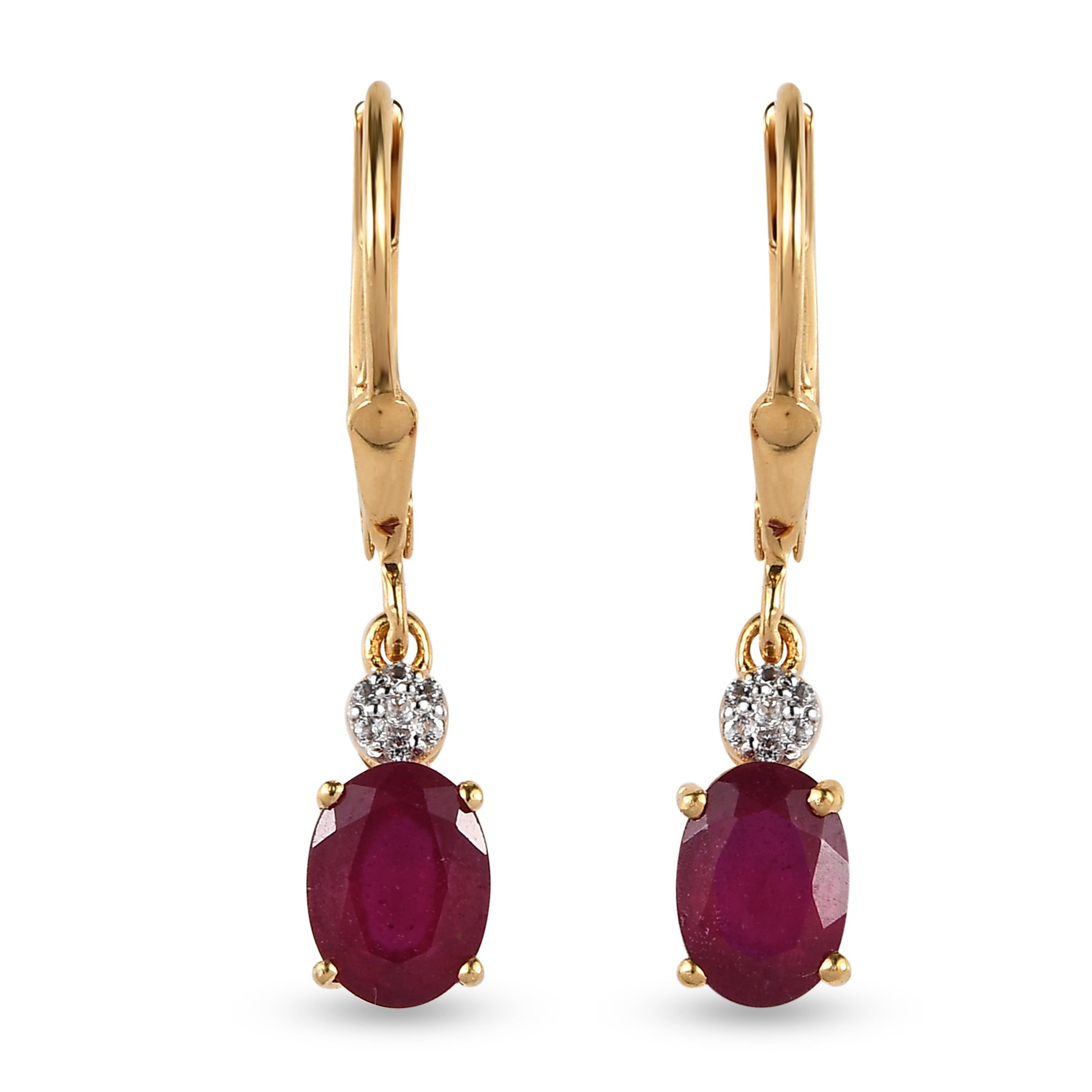 Pozlacená 925 / 1000 Sterlingové Stříbro Sada s Thajským Rubínem a Brazilským Smaragdem ( Náušnice ) - Karátové číslo: 6.75. přibližná hmotnost: 7.2 gramů KÓD: ROS001 Velikost Šperku: 22.50 mm x 5.10 mm
