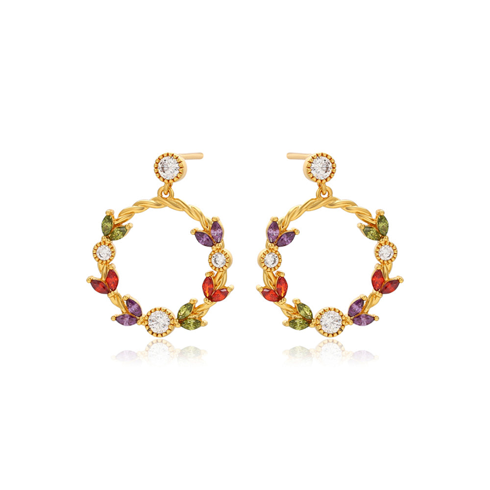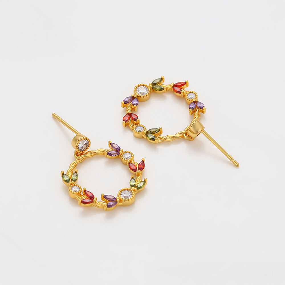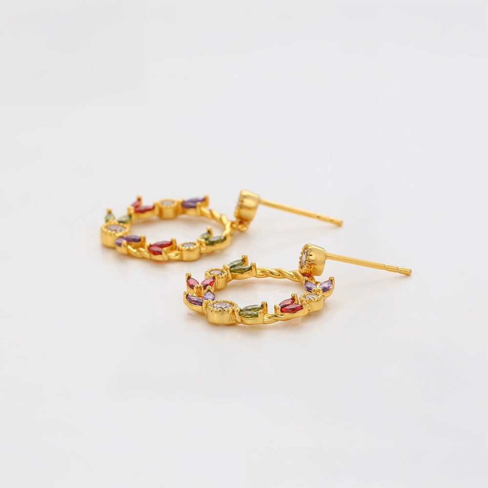 Pozlacené Slitinové Náušnice s Červeným Emporia® Křišťálem a Bílým Emporia® Křišťálem