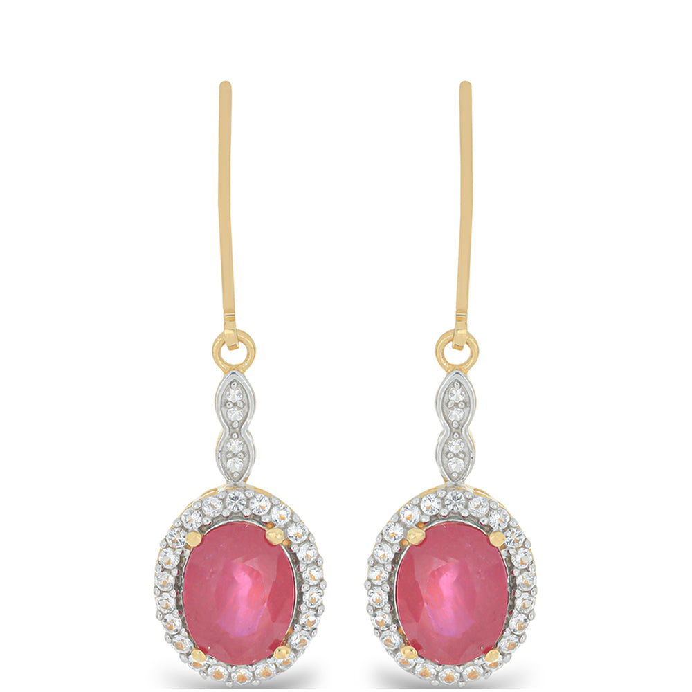 Pozlacené Stříbro 925/1000 - Náušnice s Madagaskarským Rubínem a Bílým Topazem - Karátové číslo: 5.63. přibližná hmotnost: 4.61 gramů
