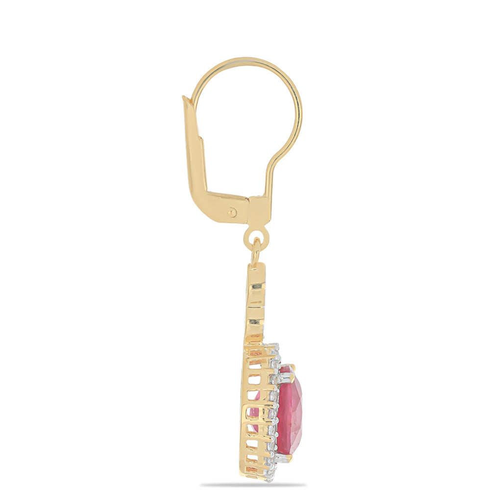 Pozlacené Stříbro 925/1000 - Náušnice s Madagaskarským Rubínem a Bílým Topazem - Karátové číslo: 5.63. přibližná hmotnost: 4.61 gramů KÓD: Y54552 Zapínání náušnic: Dámský patent