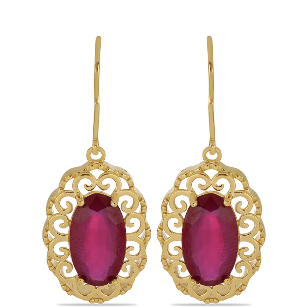 Pozlacené Stříbro 925/1000 - Náušnice s Madagaskarským Rubínem - Karátové číslo: 11.04. přibližná hmotnost: 7 gramů