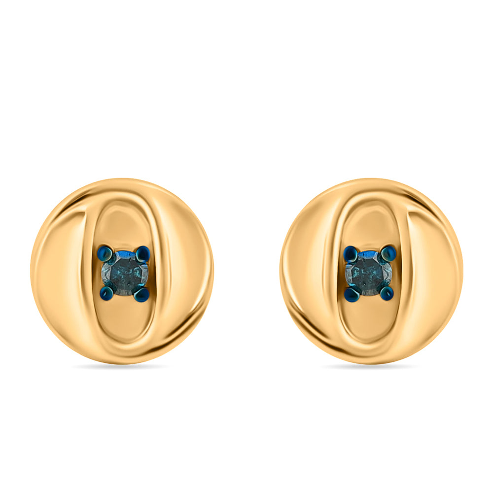 Pozlacené Stříbro 925/1000 - Náušnice s Modrým Diamantem - Karátové číslo: 0.03. přibližná hmotnost: 1.17 gramů
