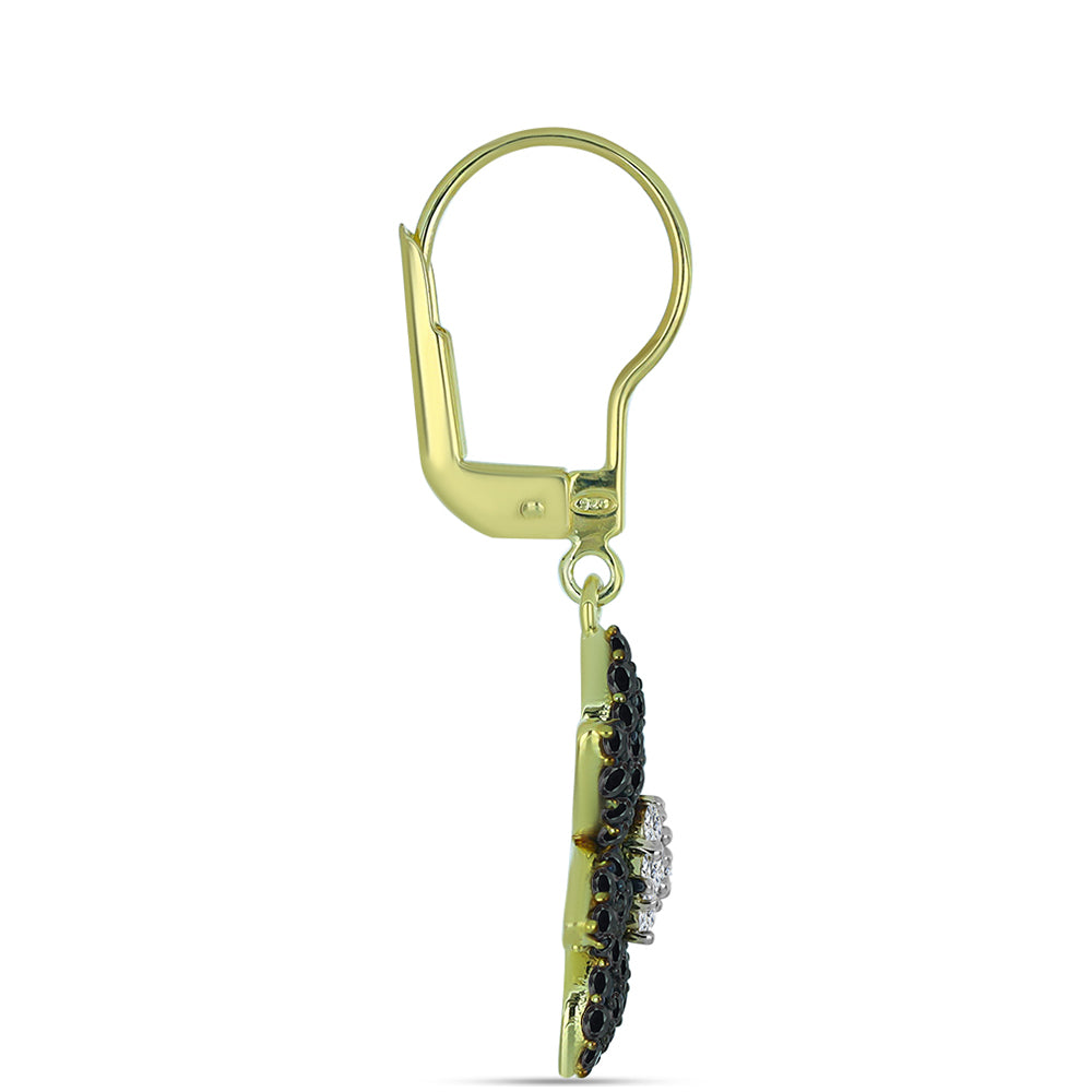 Pozlacené Stříbrné Náušnice s Obsidiánem a Bílým Topazem - Karátové číslo: 2.02. přibližná hmotnost: 4.27 gramů KÓD: Y59362 Velikost Šperku: 28.00 mm x 17.00 mm Zapínání náušnic: Dámský patent