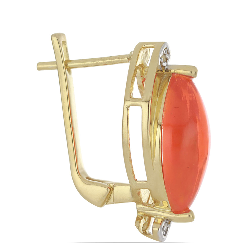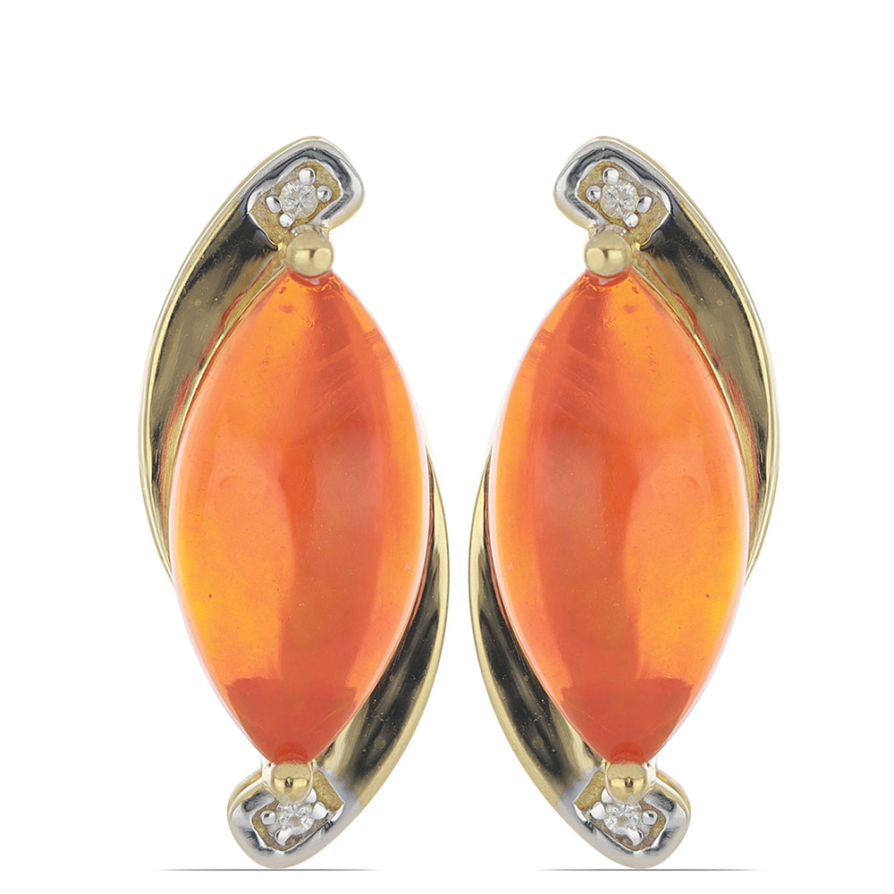 Pozlacené Stříbro 925/1000 - Náušnice s Oranžovým Opálem z Lega Dembi a Bílým Topazem - Karátové číslo: 4.9. přibližná hmotnost: 6.42 gramů KÓD: Y47715 Zapínání náušnic: Ruský patent
