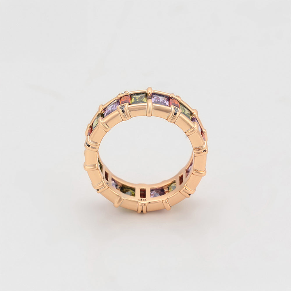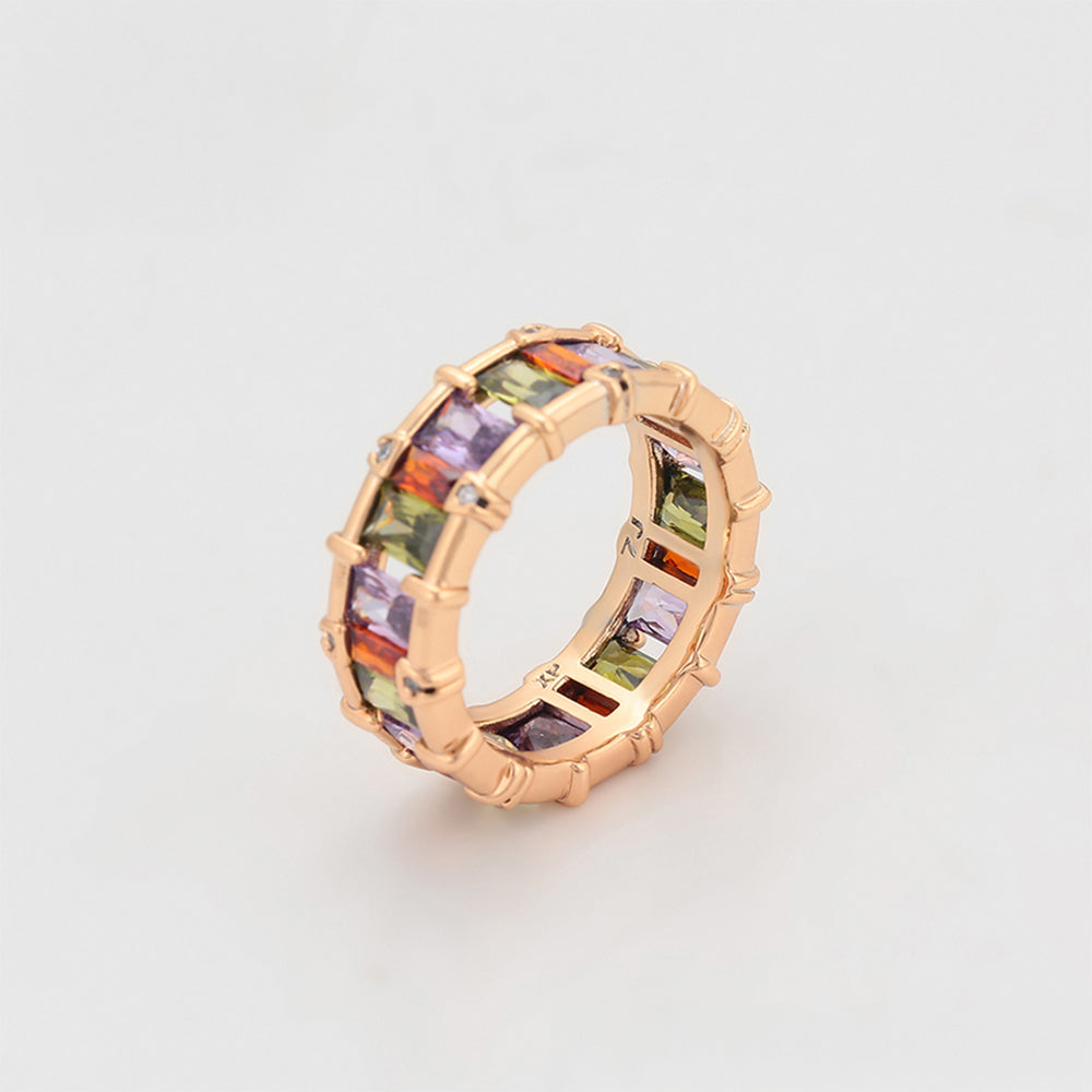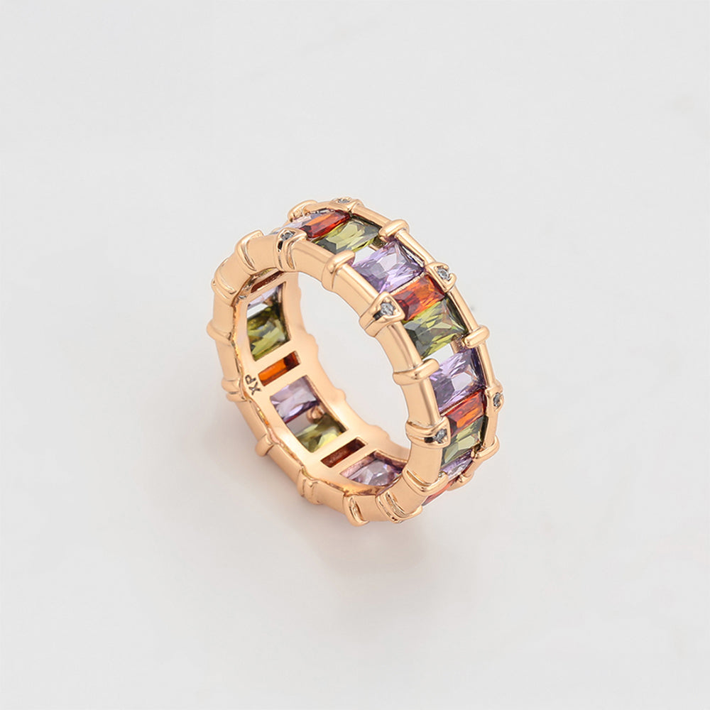 Pozlacený Slitinový Prsten s Fialovým Emporia® Křišťálem a Růžovým Emporia® Křišťálem