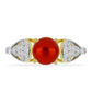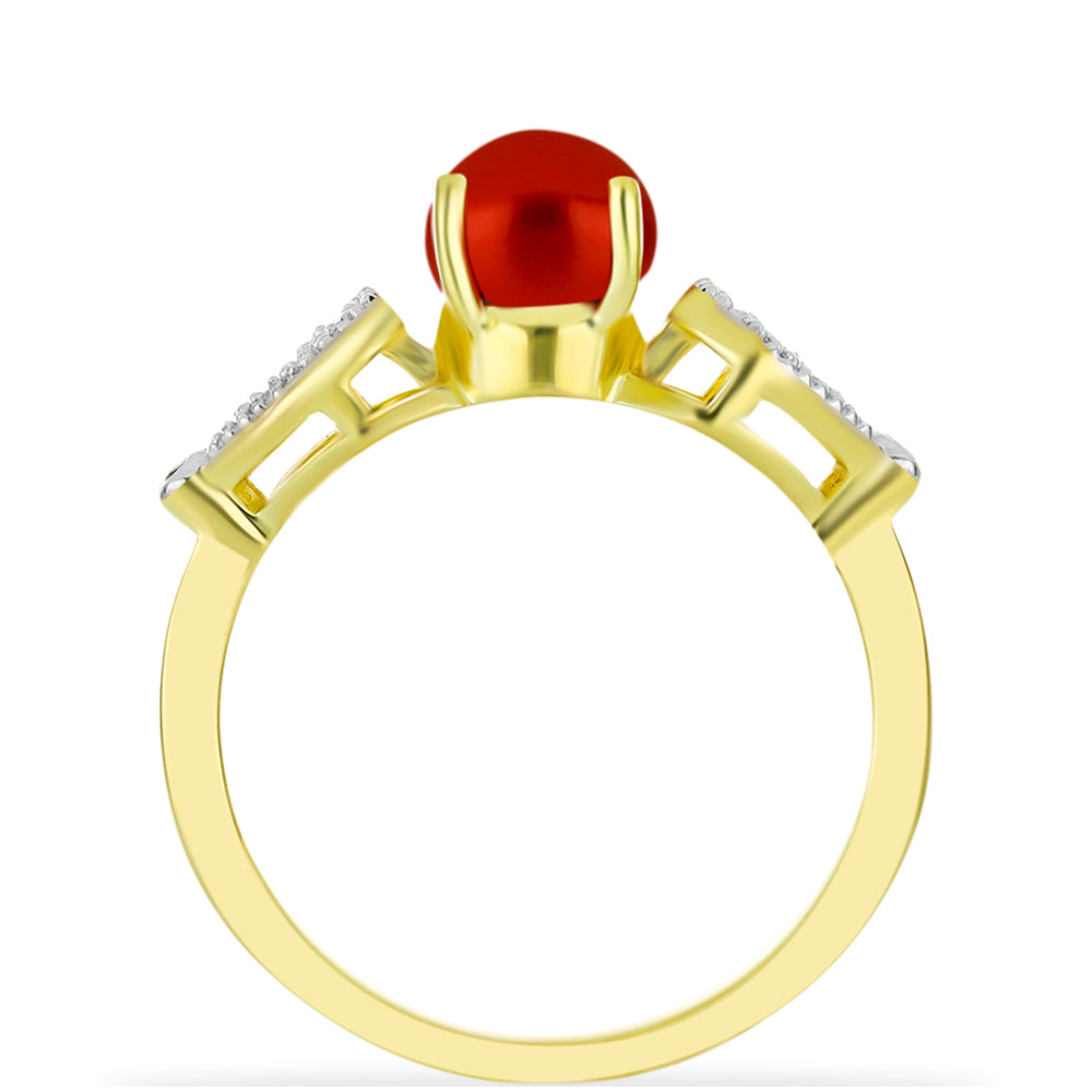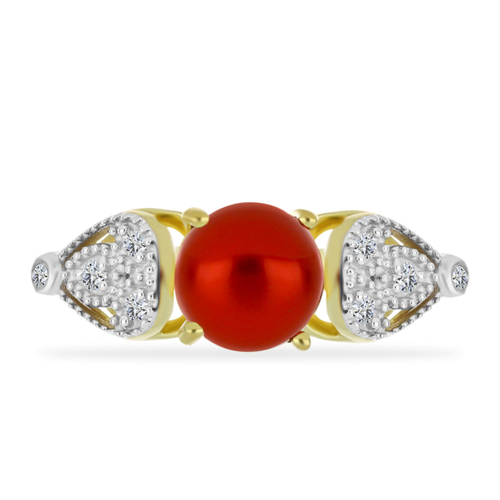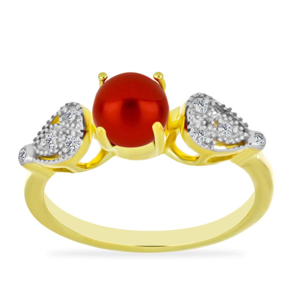 Pozlacené Stříbro 925/1000 - Prsten s Červená sladkovodní Perlou a Bílým Topazem - Karátové číslo: 1.17. přibližná hmotnost: 2.75 gramů