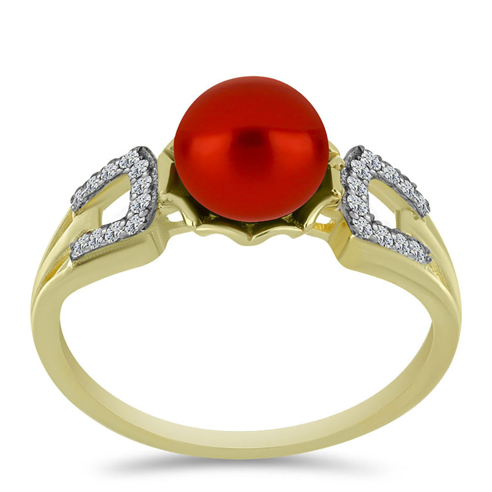Pozlacené Stříbro 925/1000 - Prsten s Červená sladkovodní Perlou a Bílým Topazem - Karátové číslo: 2.68. přibližná hmotnost: 2.89 gramů