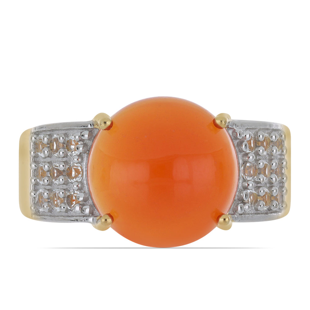 Pozlacený Stříbrný Prsten - Karátové číslo: 6.8. s Karneolem z Tagebau a Bílým Topazem přibližná hmotnost: 6.33 gramů KÓD: Y49308 Velikost Šperku: 12.30 mm x 22.60 mm
