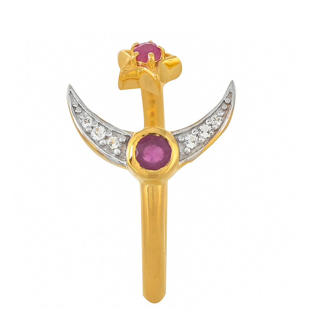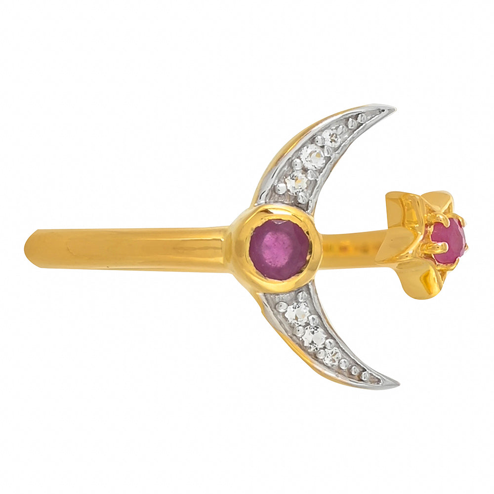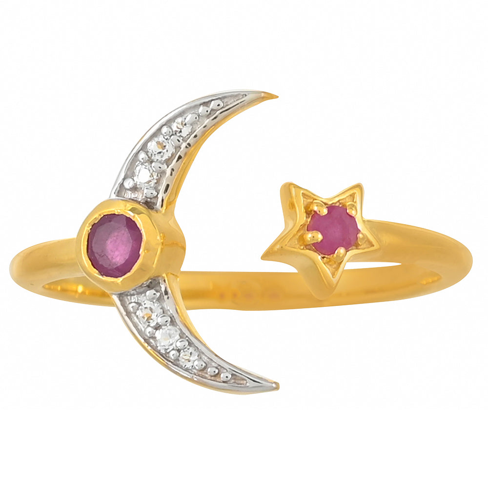 Pozlacené Stříbro 925/1000 - Prsten s Madagaskarským Rubínem - Karátové číslo: 0.29. přibližná hmotnost: 1.99 gramů