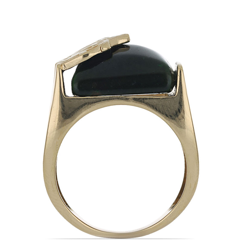 Pozlacený Stříbrný Prsten - Karátové číslo: 15.38. se Zeleným Tygřím Okem přibližná hmotnost: 12.21 gramů KÓD: Y46237 Velikost Šperku: 15 mm x 23 mm