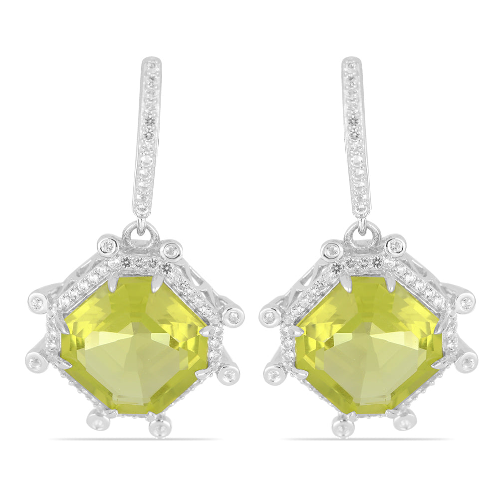 Stříbrné Náušnice s Brazilským Křišťálovým Křemenem a Bílým Topazem - Karátové číslo: 22.87. přibližná hmotnost: 13.19 gramů KÓD: Y23465 Velikost Šperku: 17 mm x 37 mm Zapínání náušnic: Ruský patent