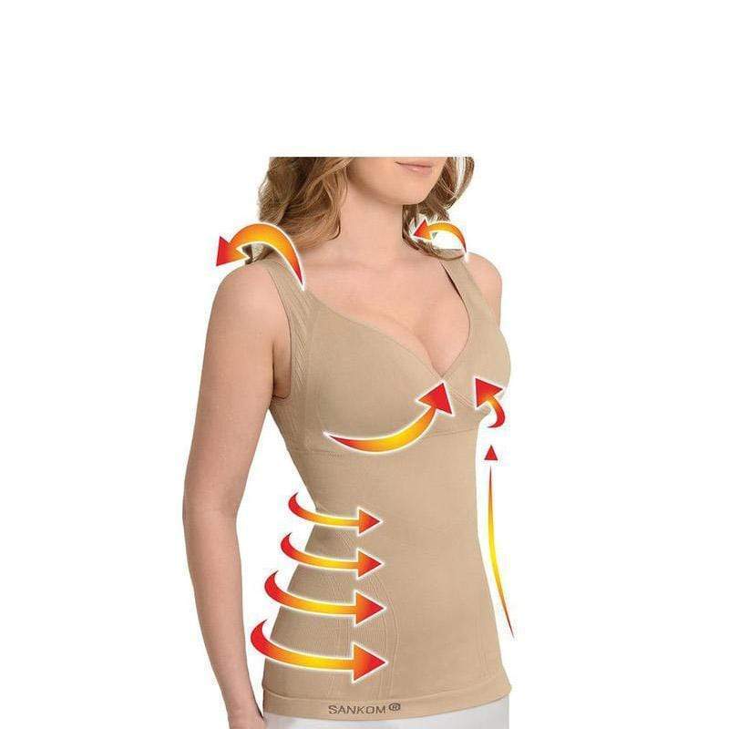 Patentované revoluční provedení švýcarské podprsenky SANKOM je první v historii, které spojuje zdravotní a estetické výhody tím, že tlačí ramena dozadu za pomocí hmotnosti prsou.