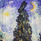 100% Hedvábná Šála, 90 cm x 180 cm, Van Gogh Cypřiš a Hvězda