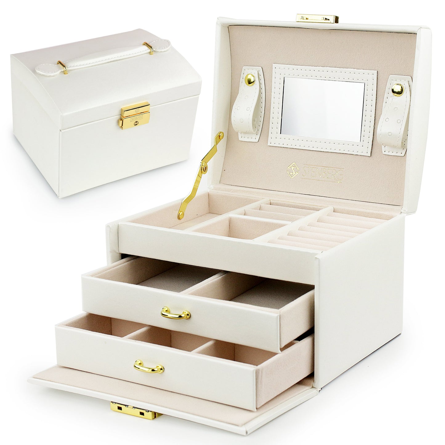 Uzamykatelná Šperkovnice a Organizér s Velurovým Vnitřkem, Bílá