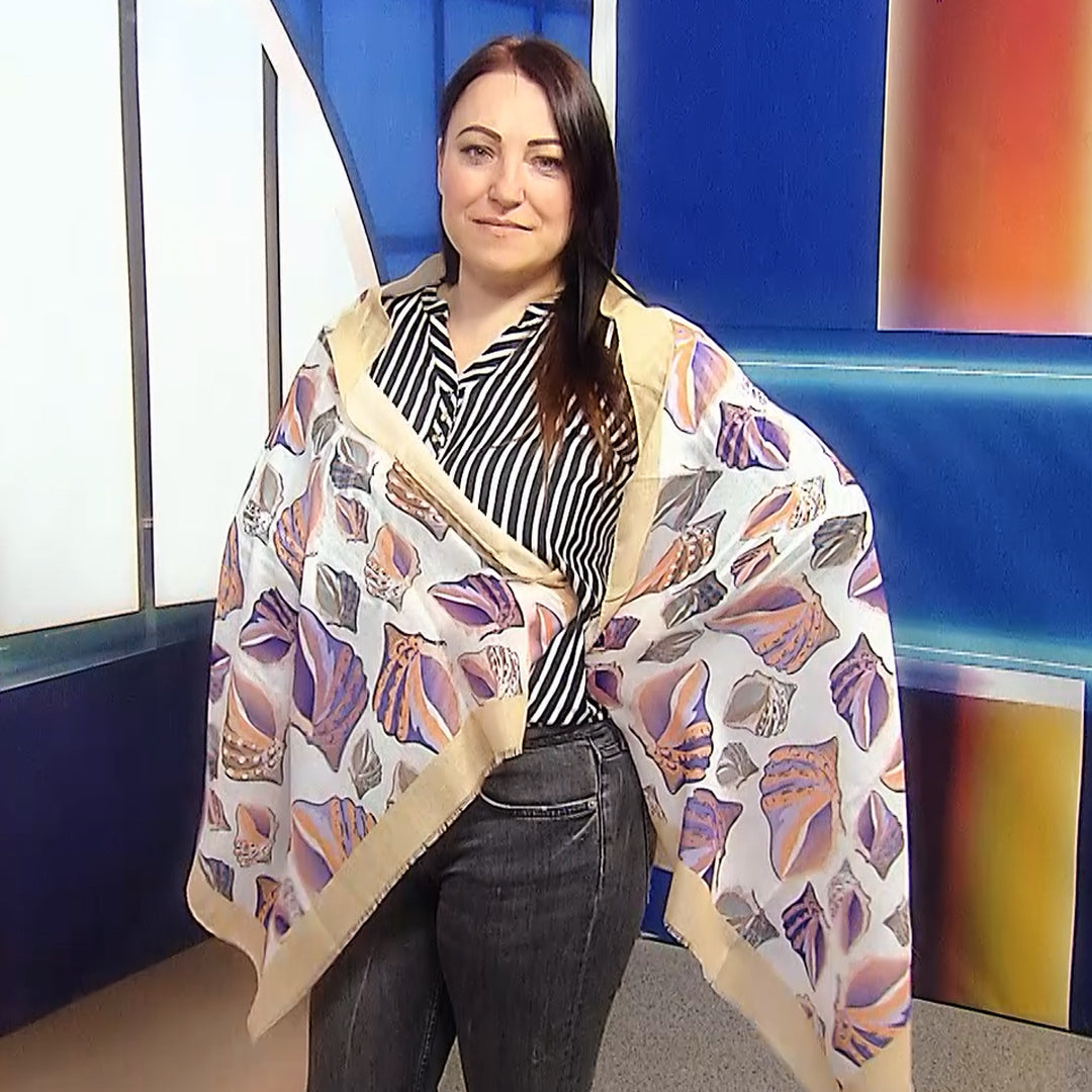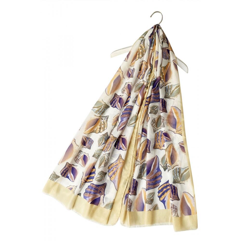 Bavlněná Šála-šátek, 70 cm x 180 cm, Bílá s mušlemi