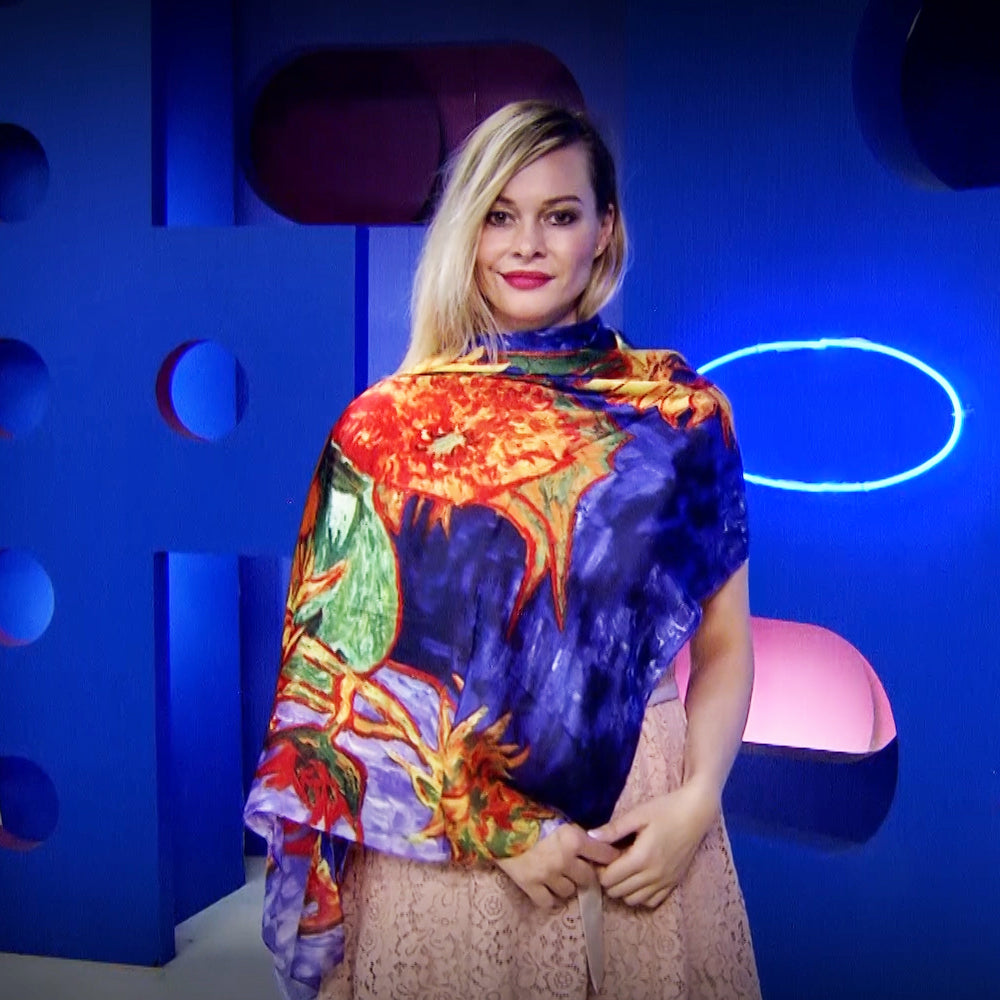 100% Hedvábná Šála, 90 cm x 180 cm, Van Gogh Šest Slunečnic
