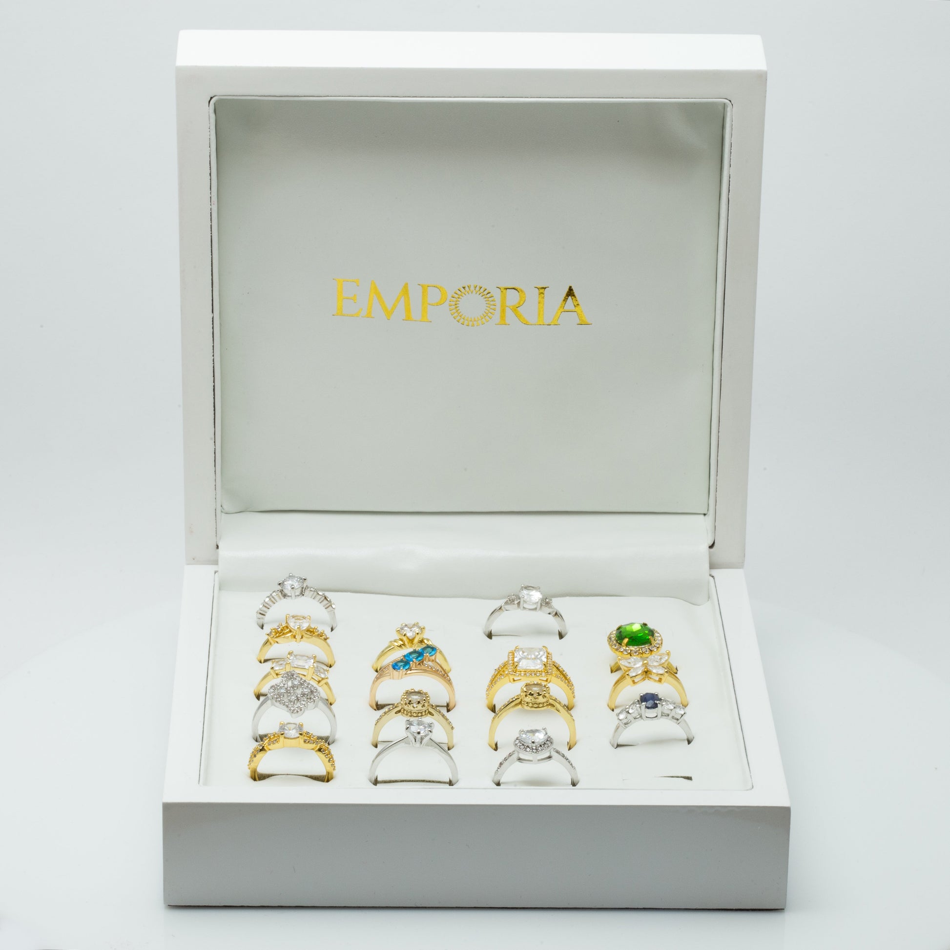 White wooden jewellery box for 20 rings