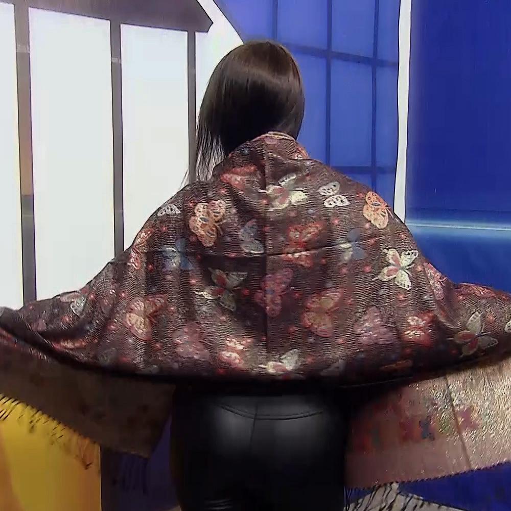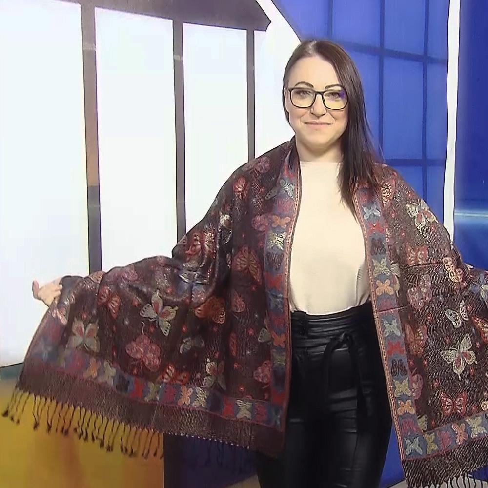 Rozměry: 70 cm x 170 cmMateriál: 100% pashmina kašmír Barva: Lesklá černá s motýlím vzorem