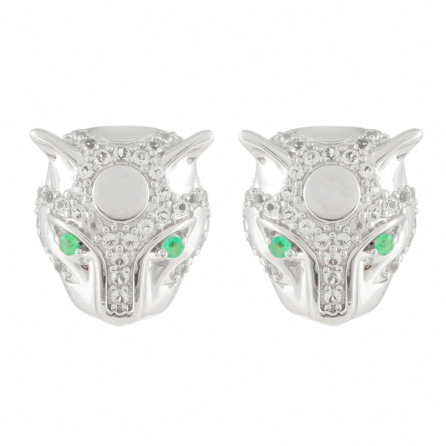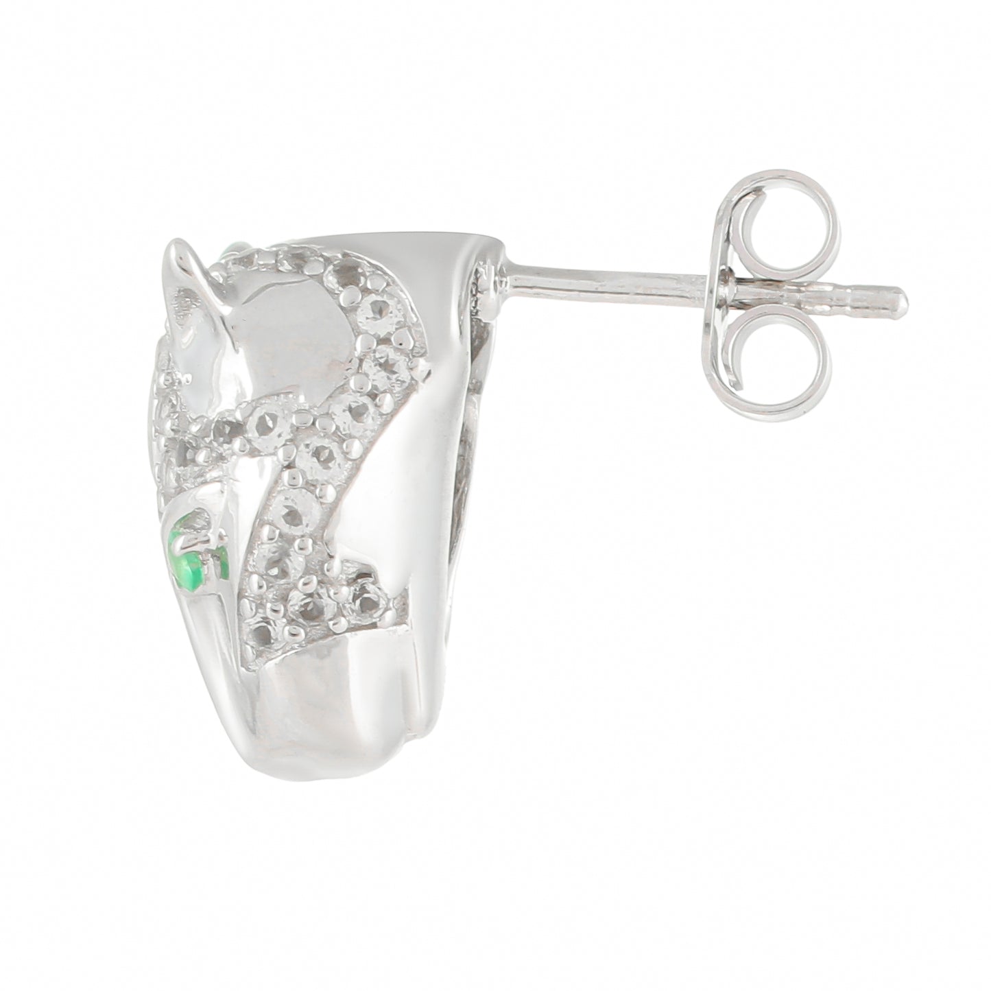 Stříbro 925/1000 - Náušnice s Brazilským Smaragdem a Bílým Topazem - Karátové číslo: 1.11. přibližná hmotnost: 9.76 gramů
