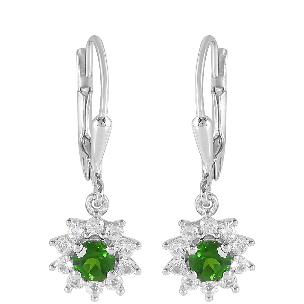Stříbrné Náušnice s Chromovým Diopsidem a Bílým Topazem - Karátové číslo: 1.08. přibližná hmotnost: 2.11 gramů KÓD: PCY11060 Zapínání náušnic: Dámský patent