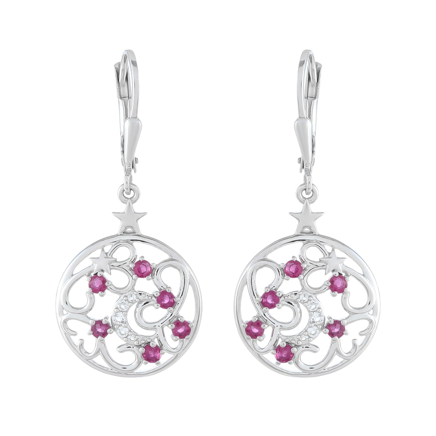 Stříbro 925/1000 - Náušnice s Thajským Rubínem a Bílým Topazem - Karátové číslo: 0.77. přibližná hmotnost: 3.91 gramů