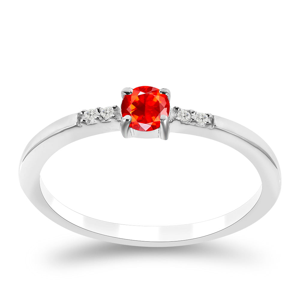 Stříbro 925/1000 - Prsten s Etiopským Červeným Opálem z Lega Dembi a Bílým Topazem - Karátové číslo: 0.18. přibližná hmotnost: 1.69 gramů