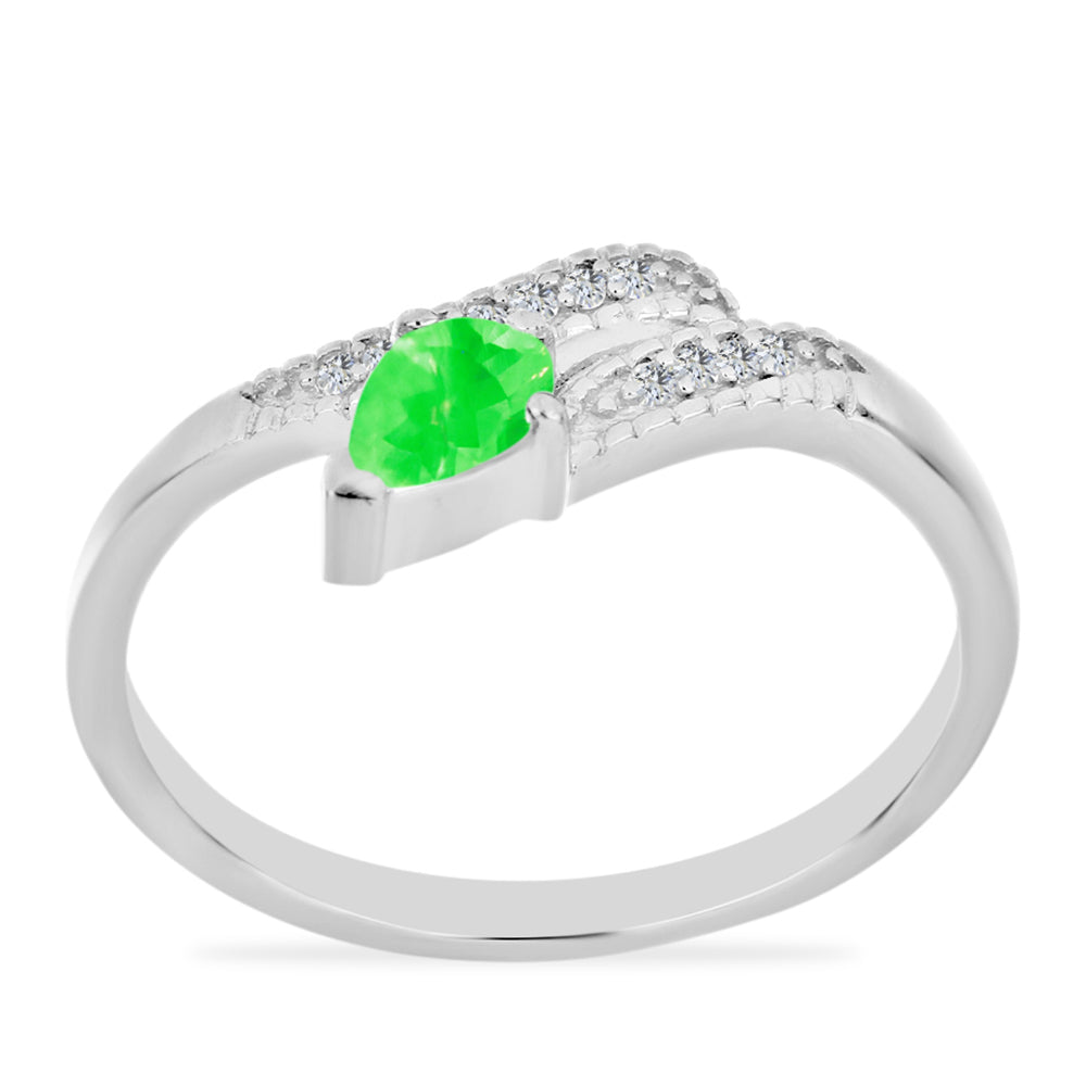 Stříbro 925/1000 - Prsten s Hyalit Opálem a Bílým Topazem - Karátové číslo: 0.39. přibližná hmotnost: 2.58 gramů
