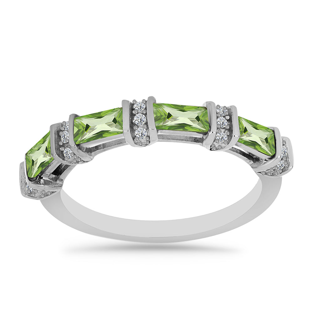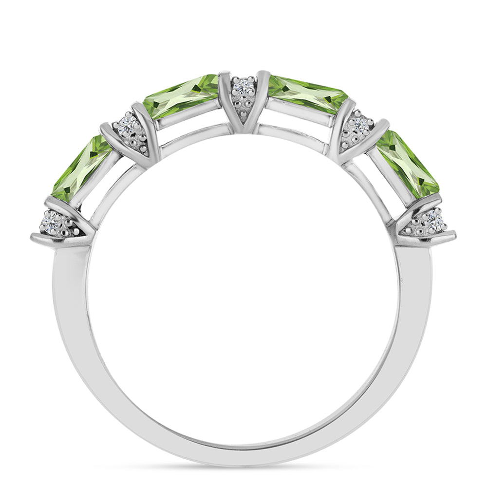 Stříbro 925/1000 - Prsten s Kapradinově Zeleným Křemenem a Bílým Topazem - Karátové číslo: 1.01. přibližná hmotnost: 3 gramů