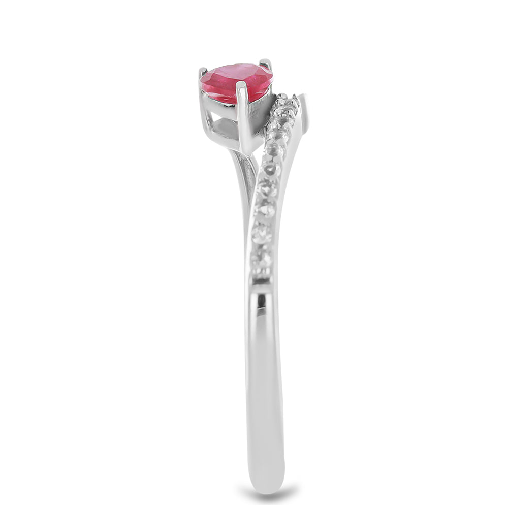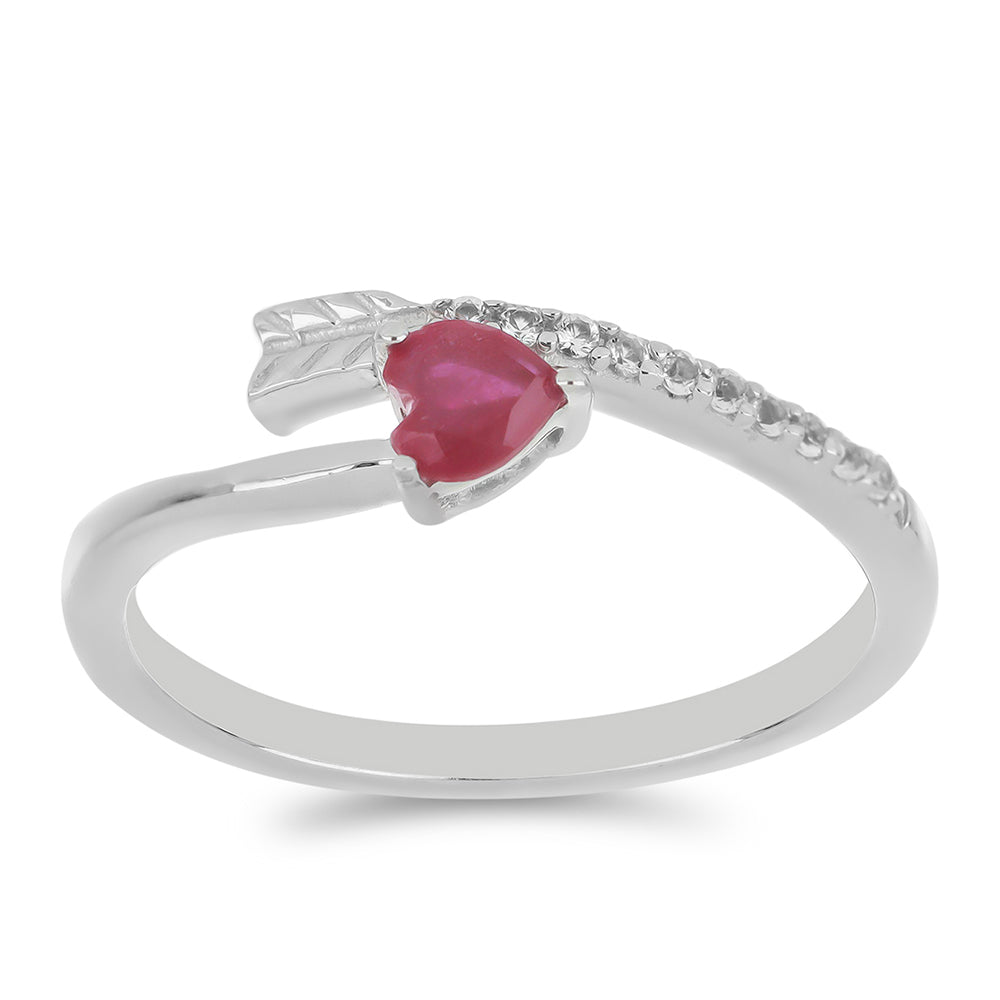 Stříbro 925/1000 - Prsten s Madagaskarským Rubínem a Bílým Topazem - Karátové číslo: 0.45. přibližná hmotnost: 2.01 gramů
