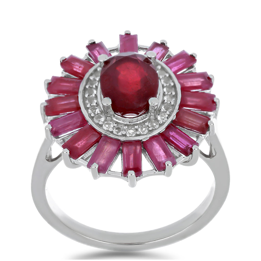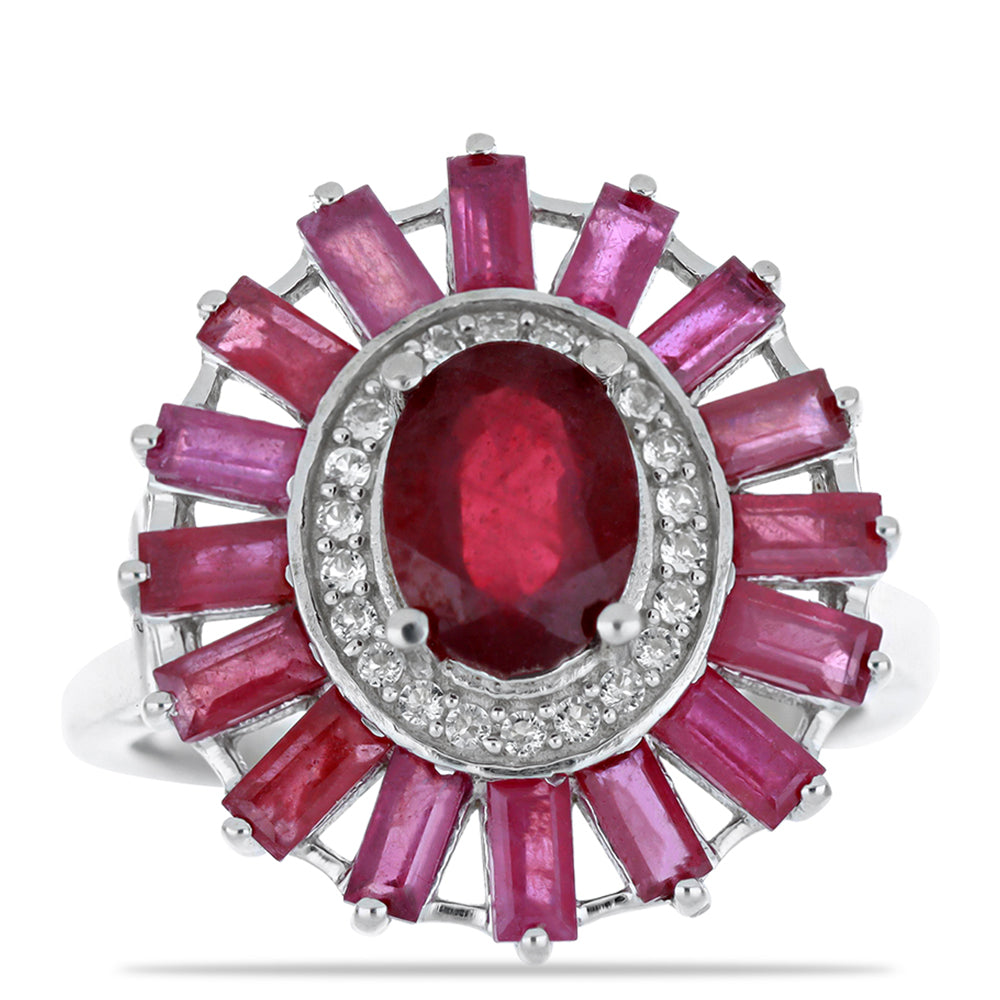 Stříbro 925/1000 - Prsten s Madagaskarským Rubínem a Bílým Topazem - Karátové číslo: 5.08. přibližná hmotnost: 6.43 gramů