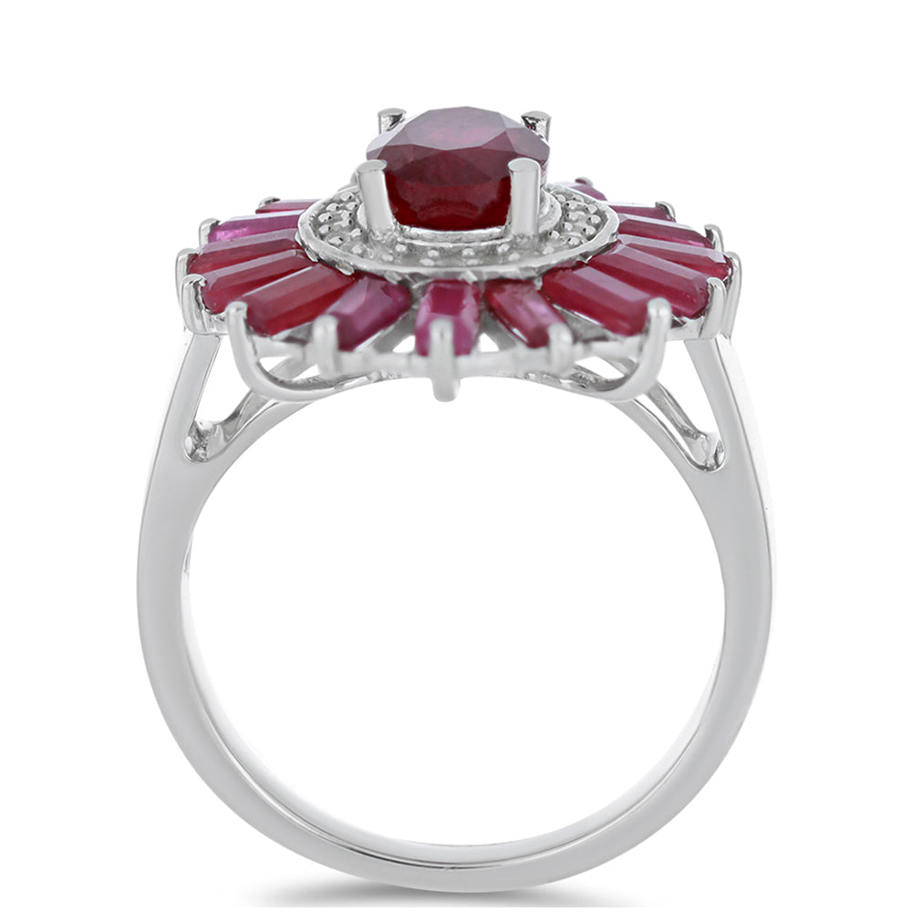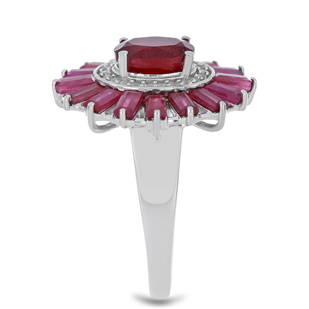 Stříbro 925/1000 - Prsten s Madagaskarským Rubínem a Bílým Topazem - Karátové číslo: 5.08. přibližná hmotnost: 6.43 gramů KÓD: Y54073 Velikost Šperku: 21.80 mm x 21.70 mm