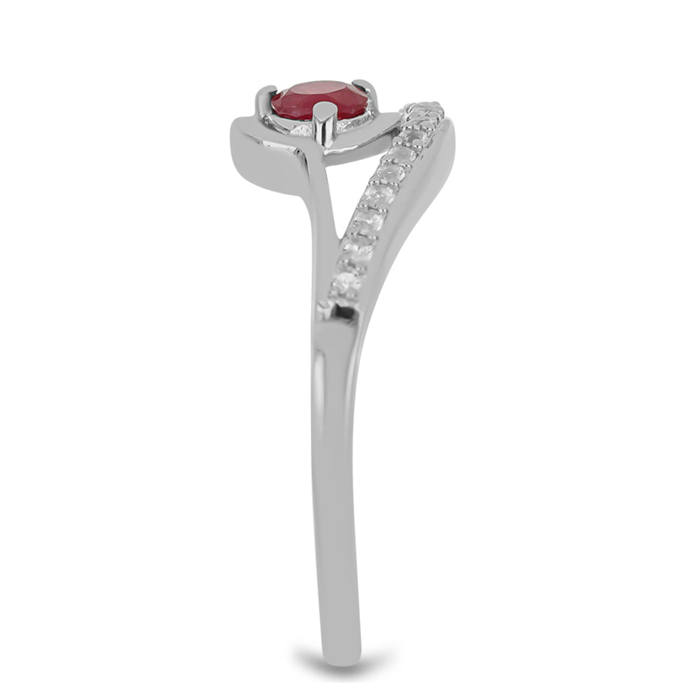 Stříbro 925/1000 - Prsten s Madagaskarským Rubínem a Bílým Topazem - Karátové číslo: 0.54. přibližná hmotnost: 2.61 gramů