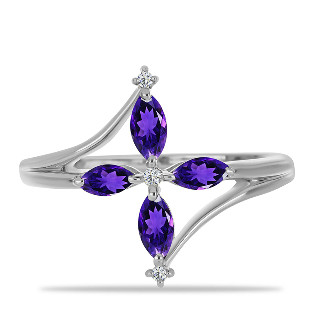 Stříbro 925/1000 - Prsten s Marockým Ametystem a Bílým Topazem - Karátové číslo: 0.74. přibližná hmotnost: 2.71 gramů