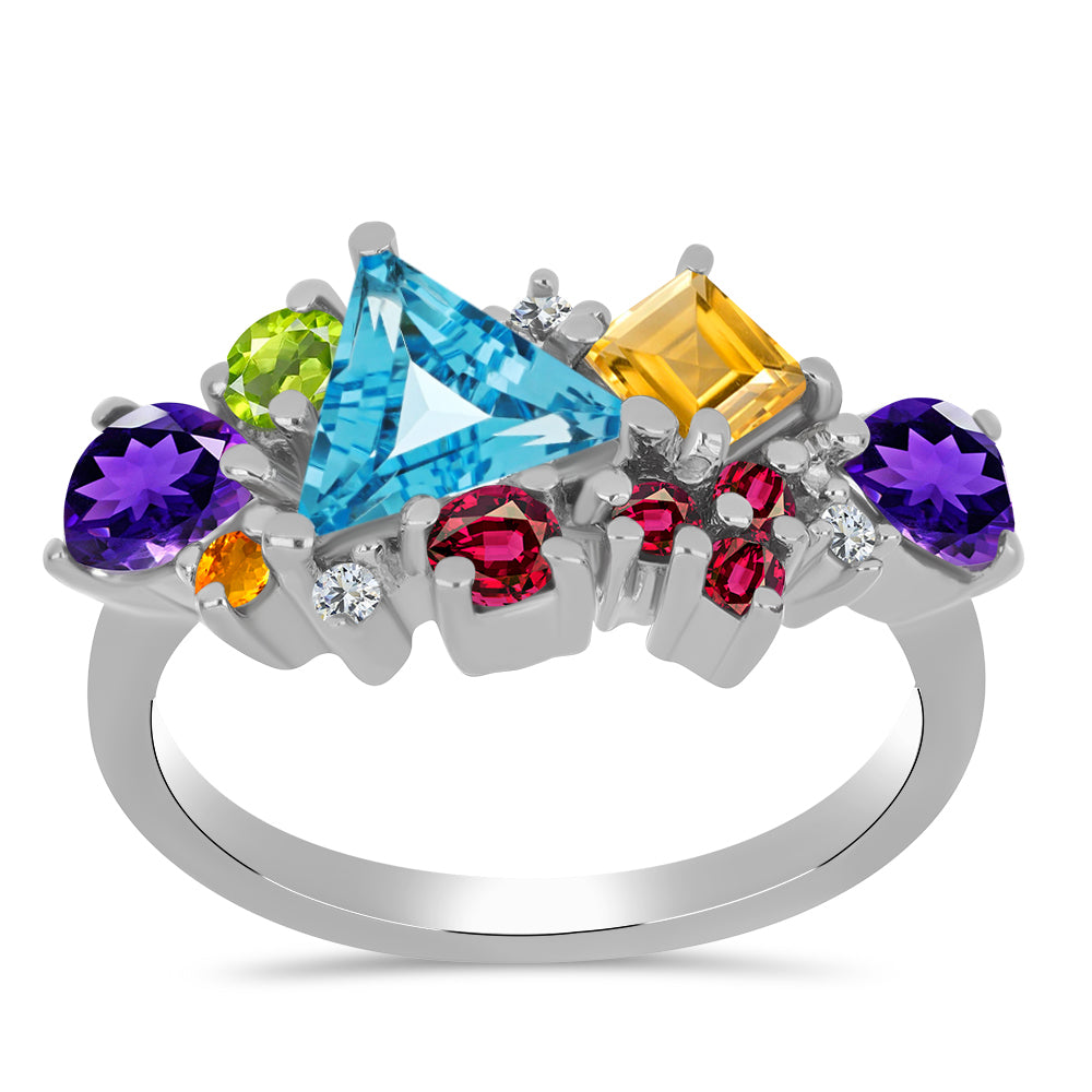 Stříbro 925/1000 - Prsten s Marockým Ametystem a se Zlatým Citrínem z Rio Grande do Sul - Karátové číslo: 2.75. přibližná hmotnost: 4.06 gramů