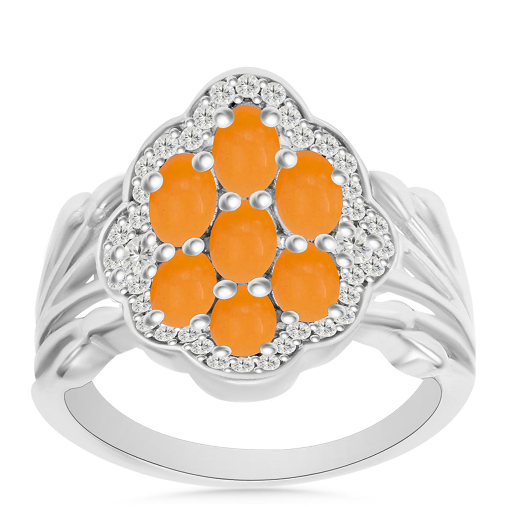 Stříbro 925/1000 - Prsten se Žlutým Jadeitem a Bílým Topazem - Karátové číslo: 2.01. přibližná hmotnost: 5.03 gramů
