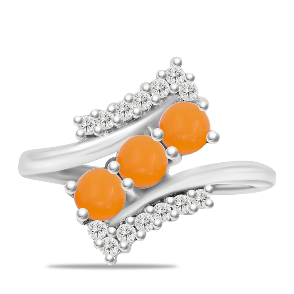 Stříbro 925/1000 - Prsten se Žlutým Jadeitem a Bílým Topazem - Karátové číslo: 1.19. přibližná hmotnost: 2.97 gramů